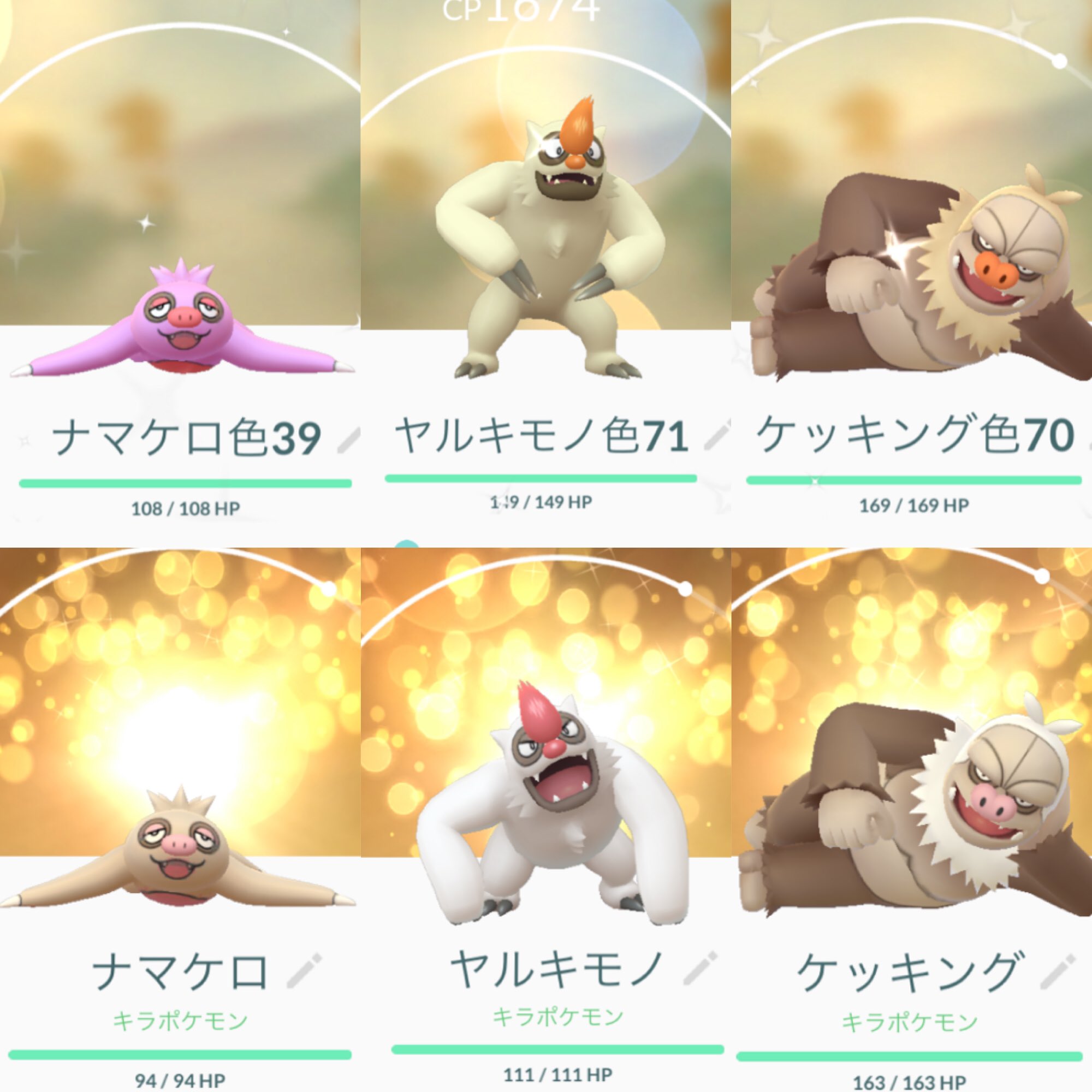 Twitter 上的 Aki ポケモンgo垢 ナマケロ コミュニティデイお疲れ様でした 色違いは無事に3体ゲットできたので1匹ずつ確保 キラもケッキングまで進化できて満足です T Co Yrav8vpcwi Twitter
